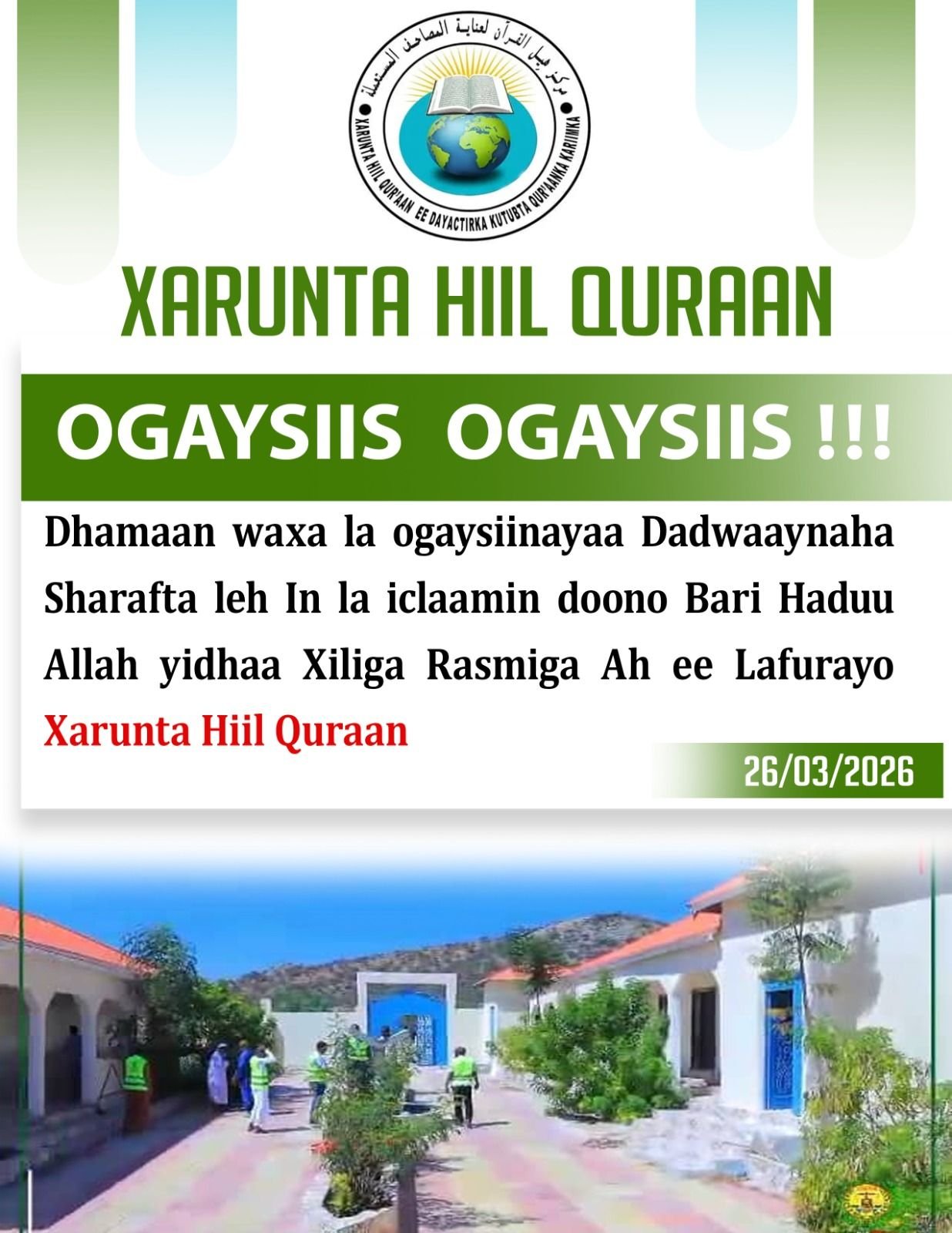 Sawirada Xaflada Shaacinta Dhismaha Xarunta Dayac Tirka Kitaabta Quranka Kariimka